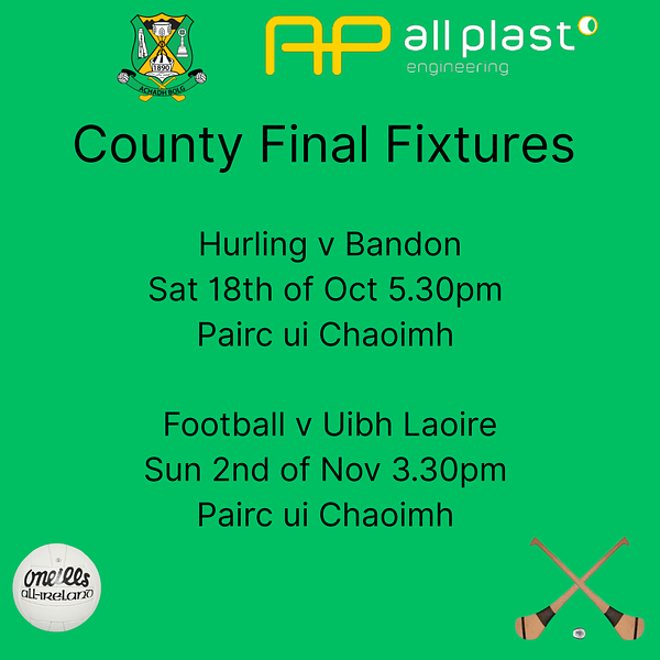 Our County Final Fixtures are now fully confirmed. Lets deck the parish out in Green and White 🟢⚪️