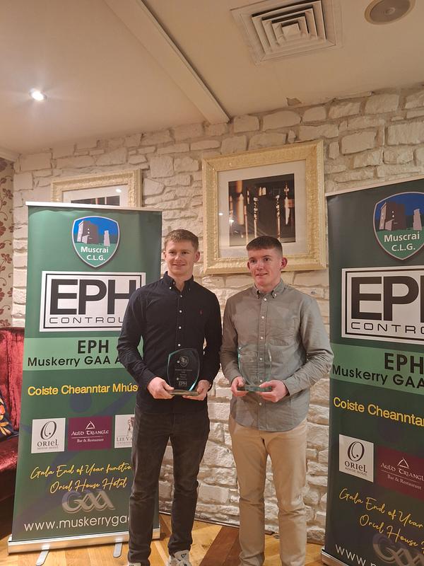 Big congratulations to Matthew & Paul who were presented with Muskerry awards tonight in The Auld Triangle. Both the lads were honoured for their brilliant performances during the season in hurling and football and especially the County Finals. Well done lads