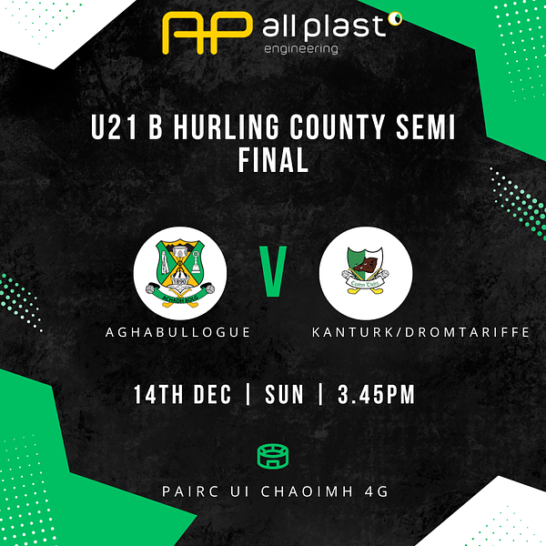 Best of luck to our u21 hurlers who play the county semi final this weekend. Please come to Pairc Ui Chaoimh to support the lads as they aim to reach another county final for the club in 2025
