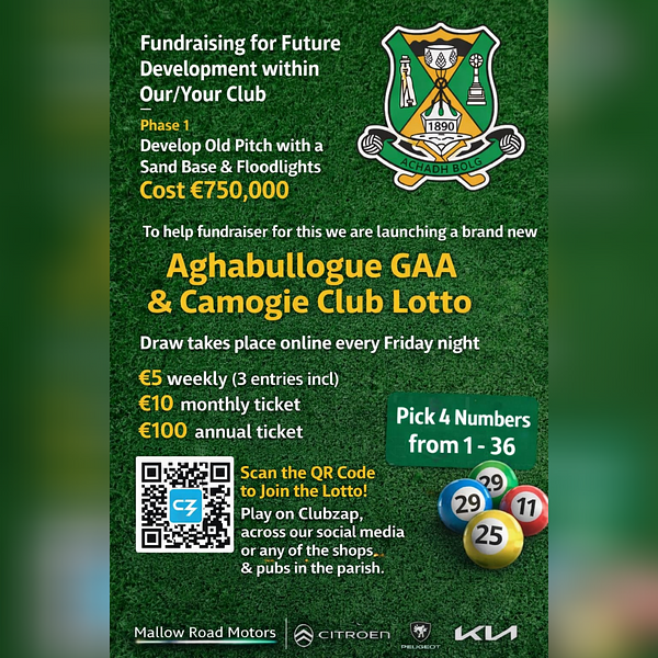 Lotto About Contact History Honours Rebels Bounty Club Shop Facilities Club OfficersDownload our mobile app to hear more about Aghabullogue GAA.