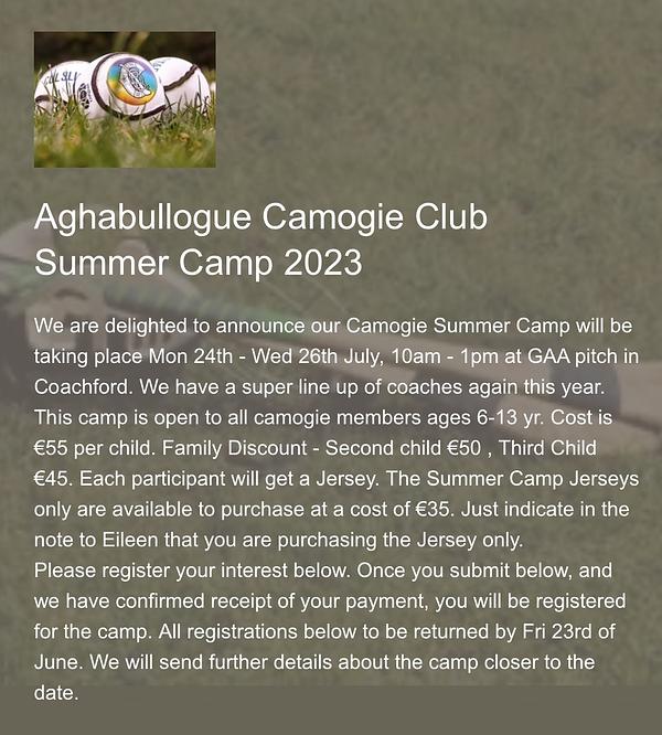 Please use the following link to register for the Summer Camogie Camp