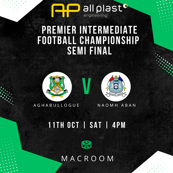 A huge game awaits on Saturday! Our Premier Intermediates are looking to reach the County Final. They take on Naomh Aban at 4pm in Macroom.