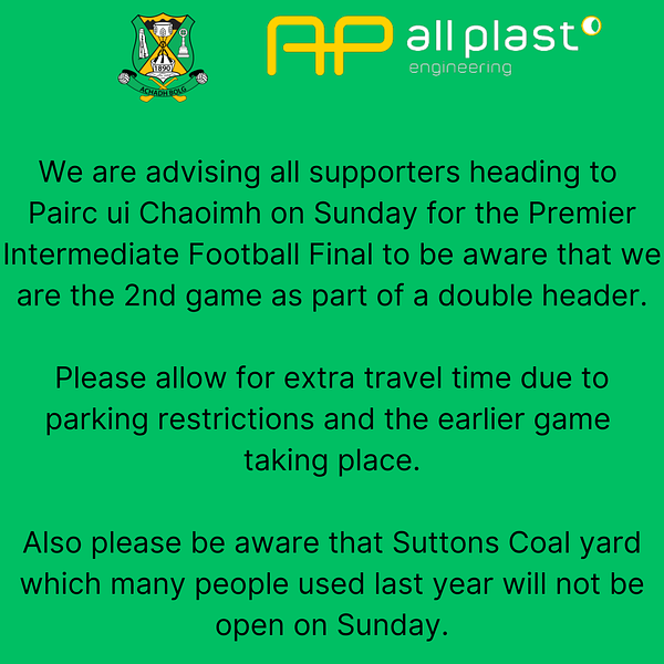 **TIME CHANGE**Both of tomorrow's games in Pairc ui Ch...